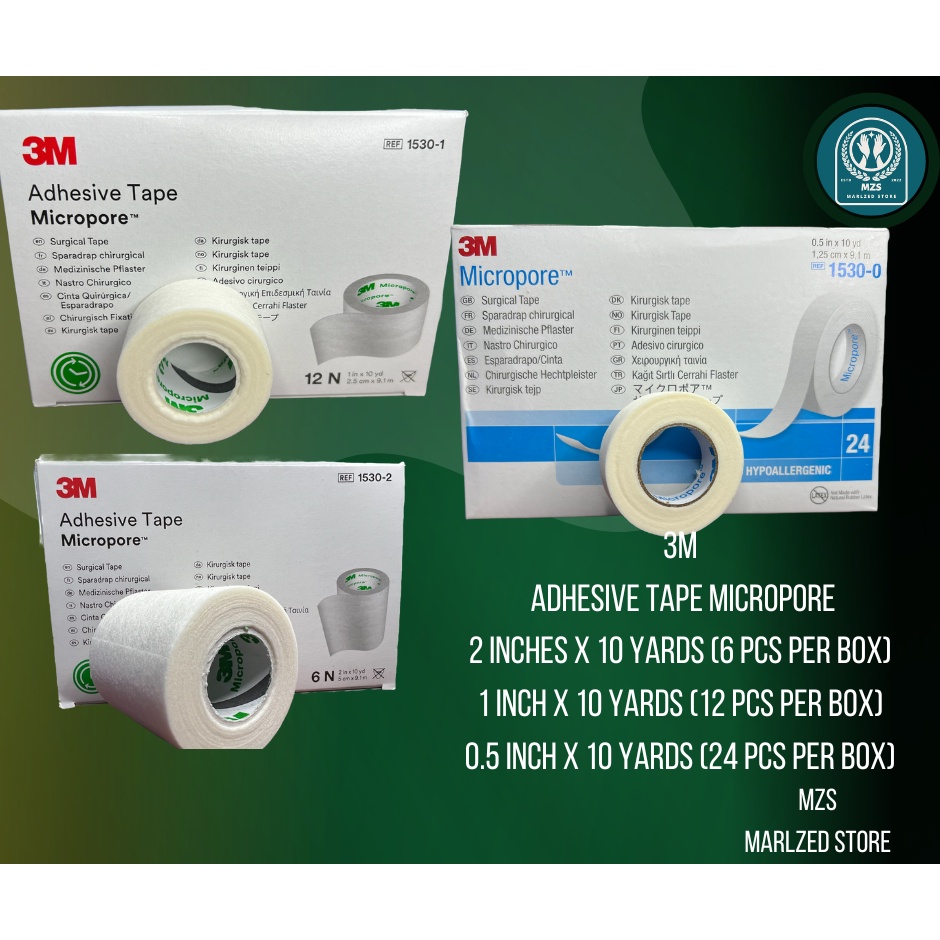 3M ADHESIVE TAPE MICROPORE 1 inch 12s, Half inch 24s, 2 inch 6s Rolls
