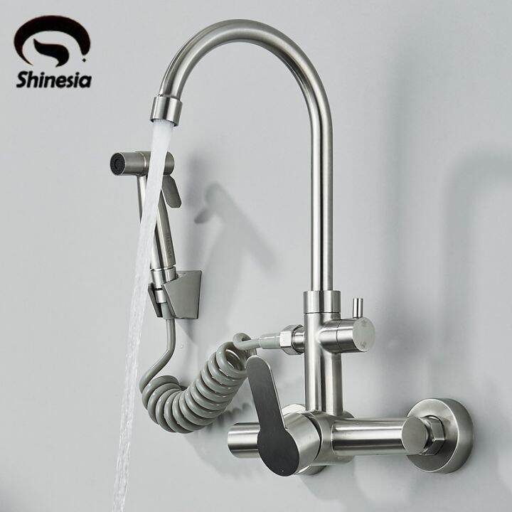 Shinesia Brushed Nickel Kitchen Sink Faucet 304 Stainless Steel Kitchen