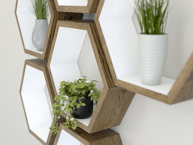 Hexagon Wall Shelf in Solid Oak Dark Oak Shelf Etsy Hexagon Wall Shelves Oak Wooden floating shelves | small hexagon oak | plant shelf | candles, wall décor | succulent shelf Hexagon floating shelves make good use of the empty wall place and create a warm and exquisite wall look to your home. Honeycomb floating shelves (set of 3) feature a modern hexagonal design in a clean oak finish with. Metal wall shelf loft. Hexagon Wall Shelves Oak.