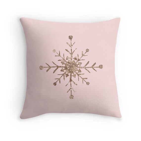 Items similar to Snowflake Christmas pillow with rose gold ink