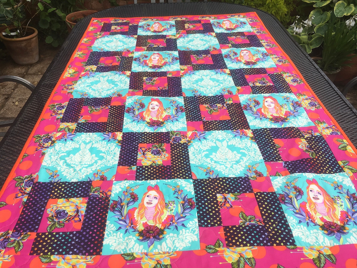 Alice in Wonderland Childs Quilt Etsy Quilt Fabric Alice In Wonderland Lunarable alice in wonderland fabric by the yard, cupcakes mushrooms and bottles hanging in sky dessert print, stretch knit fabric for clothing. With 100 different blocks sewn by hand and machine to improve your sewing skills, and 100 beautiful liberty tana lawn® fabrics you are sure to discover new things to love in this. The exquisite alice’s wonderland quilt combines. Quilt Fabric Alice In Wonderland.