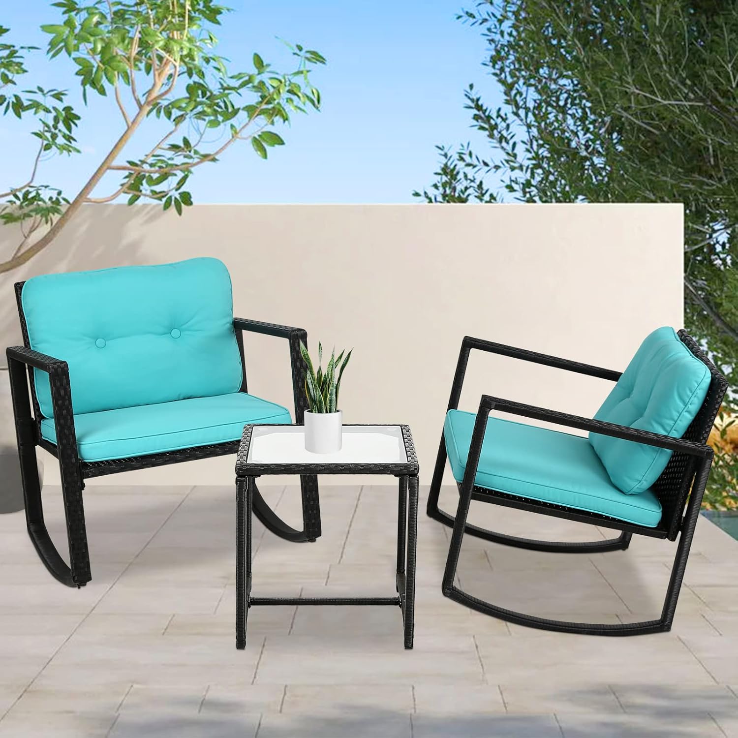Greesum 3 Pieces Rocking Wicker Bistro Set, Patio Outdoor Furniture Patio Porch Furniture Sets 3 Pieces Available in a variety of colors, the complete set of patio conversation set is a combination of modern and elegant. This outdoor patio furniture set is perfect for a patio, porch, backyard, balcony,. Buy 3 pieces patio furniture set, outdoor wicker conversation bistro set w/ 2 chairs, 2 cushions, glass coffee table for garden balcony. Easily move to any place.. Patio Porch Furniture Sets 3 Pieces.