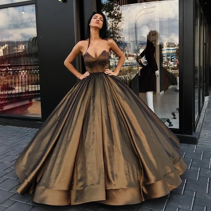 Luxury Beading Prom Gowns Sweetheart Strapless V Neck Evening Ball Gown