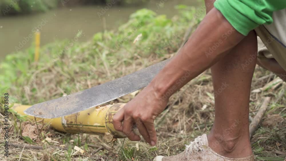 Farmer Harvesting Sugar Cane Near. Sugarcane Harvesting. Sugar Cane