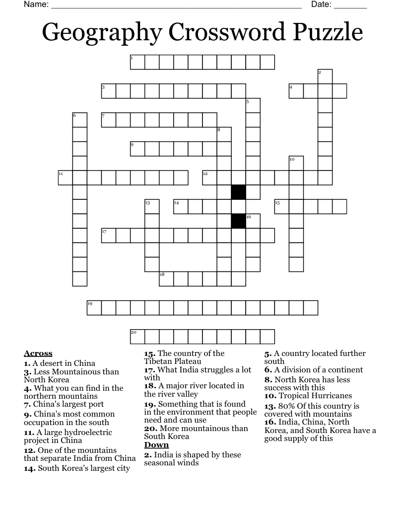 Geography Crossword Printable Geography Crossword Printable Customize with your own questions, images, and more. Learn about different countries, cities, landmarks, rivers, and more with these word search puzzles. Solving geography crossword puzzles is a fun and effective approach to learning and reviewing geographic concepts. Choose from a variety of themes and levels of difficulty and print them for free. Award winning educational materials designed to help. Geography Crossword Printable.