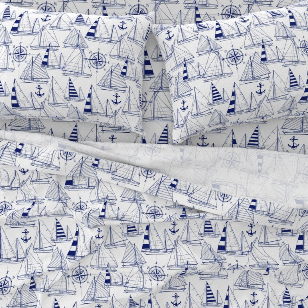 Blue Sailboats Sheets Sailboats Navy on White by Etsy Best Sheets For Sailboats We have a wide variety of sheets to choose from & they all fall into percale or sateen. Choosing the right bedding for your boat is crucial for a comfortable and restful night's sleep while at sea. Sheets and pillowcases come in various materials, each with its unique benefits. A guide to choosing the right replacement running rigging lines. This. Best Sheets For Sailboats.