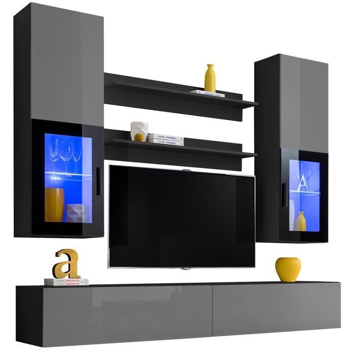 Meuble TV Mural Sky Extreme Furniture LED bleues Gris Brillant