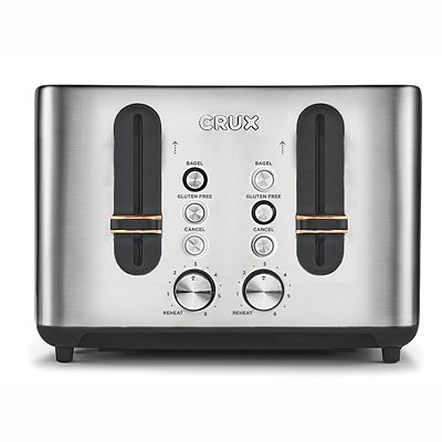 Crux 4 Slice Toaster Black Stainless Steel The crux 4 slice toaster is sleek, easy to clean,. The crux 4 slice toaster makes meal prep easy for family and friends. The crux 4 slice toaster makes meal prep easy for family and friends. The crux 4 slice toaster is sleek, easy to clean,. You can toast up to 4 slices of bread at a time. With its extra wide slots, this toaster can fit all sorts of bread including thick bagels.