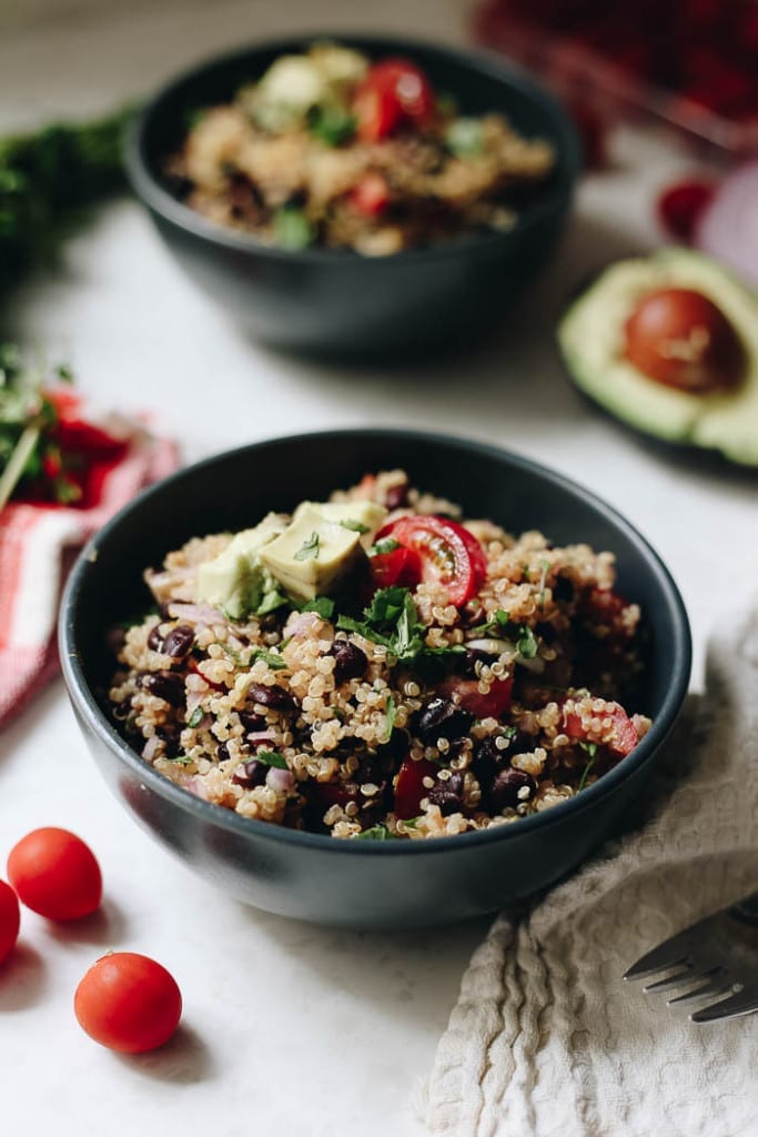 Quinoa Taco Salad Cozy Peach Kitchen Quinoa Taco Salad Enjoy this salad for a summer lunch or weeknight dinner. This quinoa taco salad is one of my favorite lunches. The quinoa in this recipe for quinoa taco salad is. It has a great balance of veggies, fiber, protein, and healthy fat to keep you full. You will love this delicious taco salad with beans, veggies, and a vegan southwest. Quinoa Taco Salad.