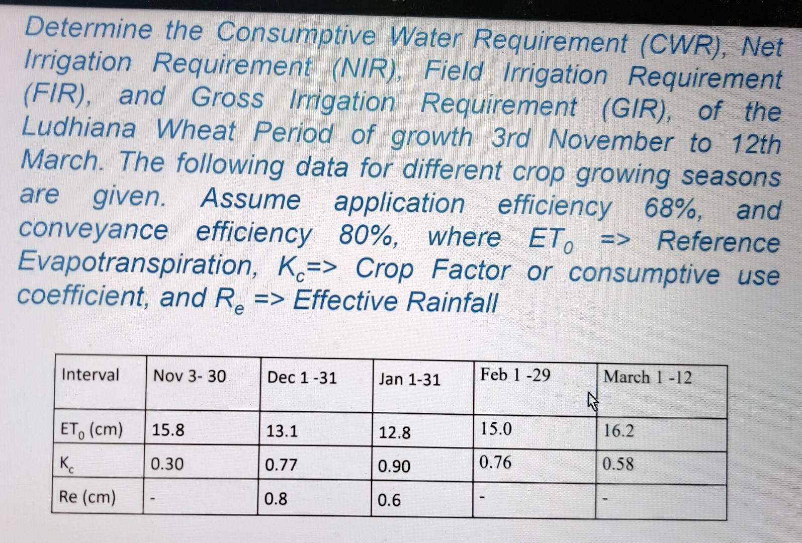 Solved Determine the Consumptive Water Requirement (CWR),