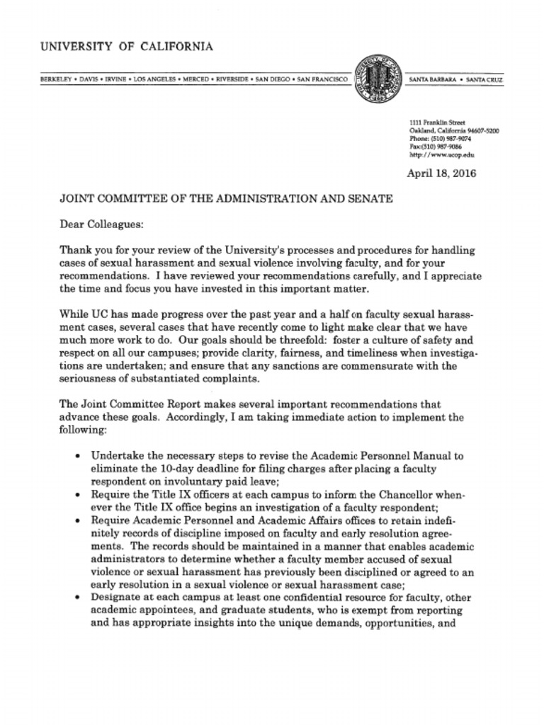 Joint Committee Doc2 University Of California Title Ix