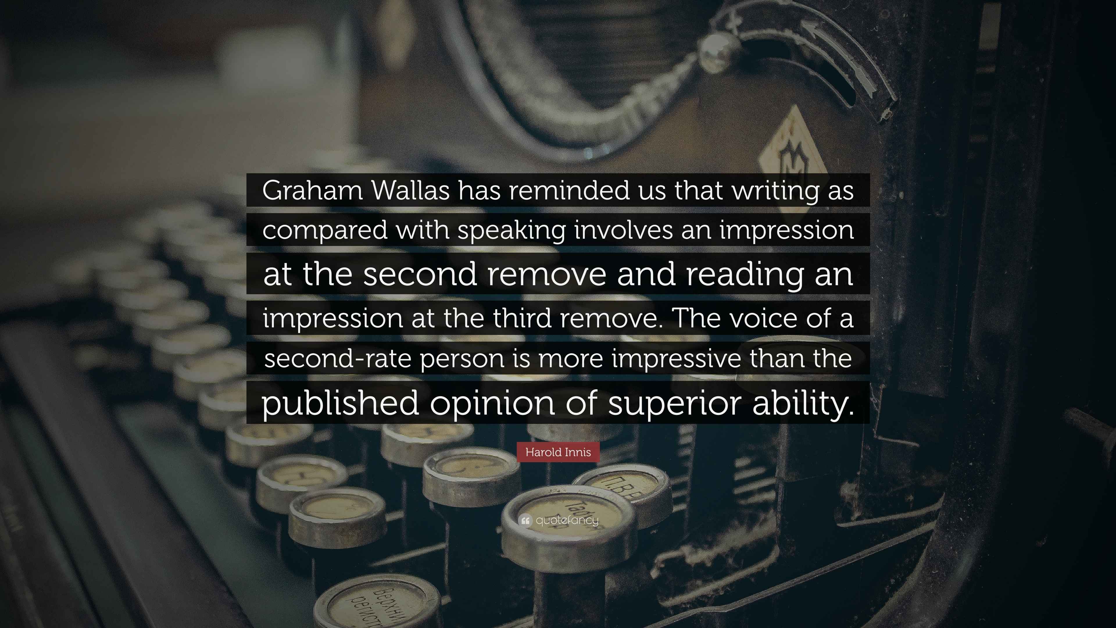 Harold Innis Quote “Graham Wallas has reminded us that writing as
