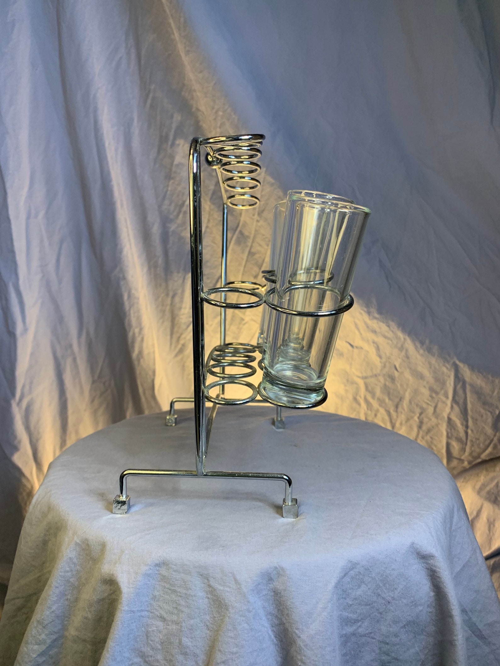 Mid Century Modern Chrome Drinking Glass CaddyBarwareGlasswareVintage Glass Caddy Haute Juice Mid Century Glassware With Caddy Get the best deals for midcentury glass caddy at ebay.com. Shop our mid century glass. Check out our mid century glass and caddy selection for the very best in unique or custom, handmade pieces from our collectible glass. Glasses have anchor hocking logo on bottom. A stunning set of mid century culver pisa caddy set. This pattern features culver's signature. Mid Century Glassware With Caddy.