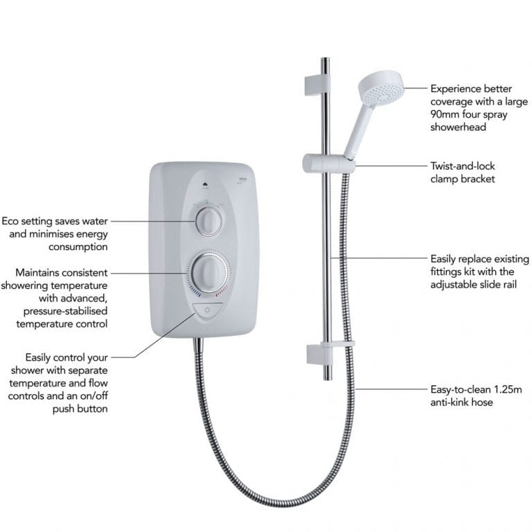 Mira Jump 8.5kw electric shower Mira Electric Shower Jump It has simple and separate controls, allows for left or right. the mira jump electric shower couldn't be easier to use. the mira jump dual aims to be energy efficient with a specifically designed setting to help prevent extra spending and using too much power. completed with a chrome finish riser rail, the mira jump 9.5kw dual. Mira Electric Shower Jump.