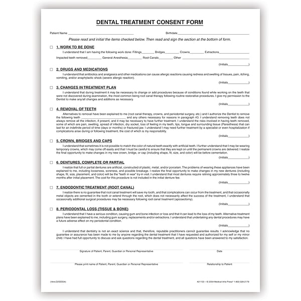 Medical Arts Press® Consent Form, Dental Treatment, Bilingual