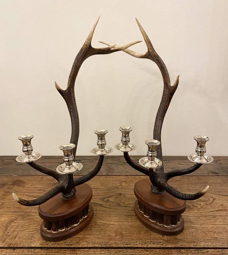 Pair of Dark Red Deer Antler Candlesticks For Sale at 1stDibs