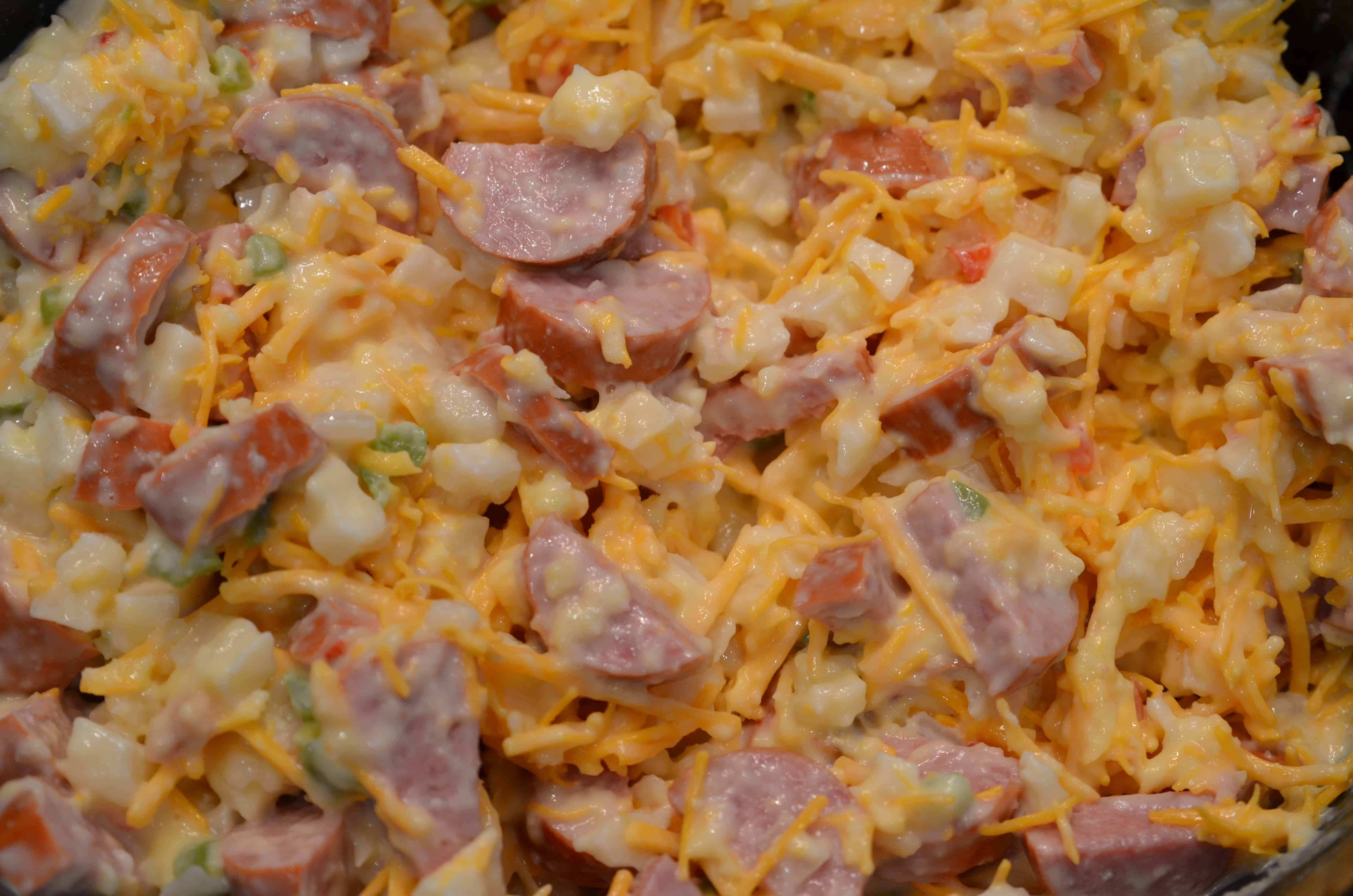 Slow Cooker Cheesy Kielbasa Hashbrown Casserole My Incredible Recipes Crock Pot Kielbasa Cheesy Potatoes This recipe uses potatoes o’brien with peppers. For maximum freshness, store leftovers in an airtight container or bag. This recipe is easy, hearty, and perfect for a cozy. This crockpot meal takes hardly any time to prep and my family always likes it! Learn how to make a cheesy and flavorful dish with kielbasa, potatoes, cream of chicken soup, and. Crock Pot Kielbasa Cheesy Potatoes.