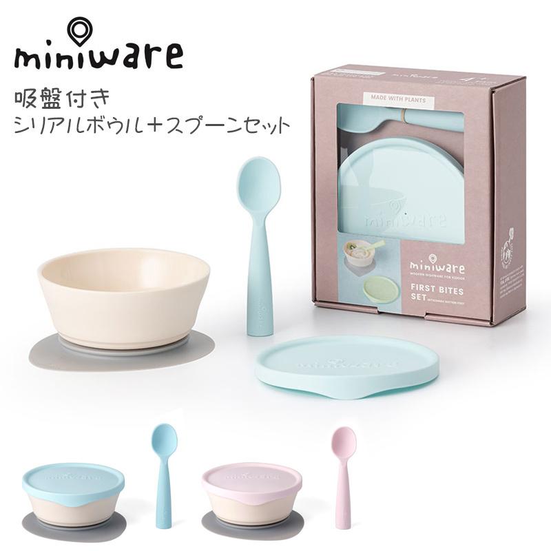 ひっくり返らない 吸盤付き ボウル ベビー食器 シリアルボウル スプーンセット ミニウェア miniware 倒れない 離乳食 おやつ ご飯