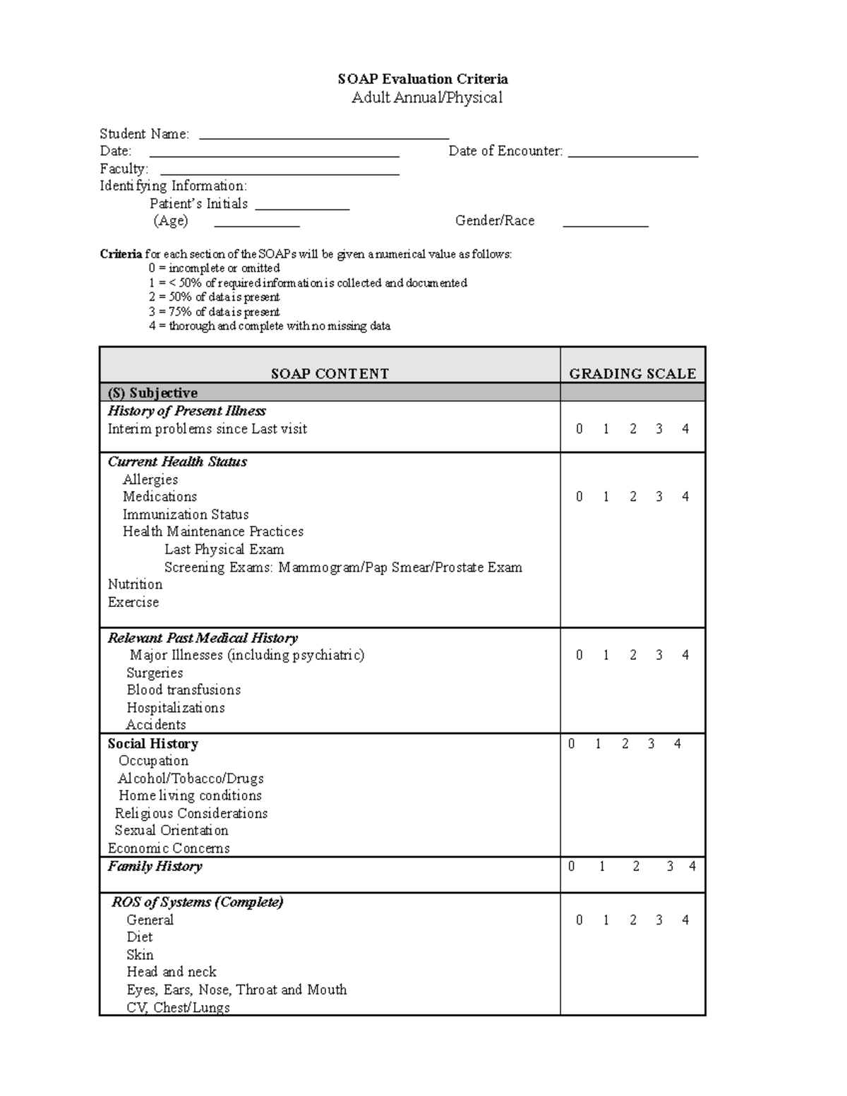 SOAP Form Adult Annual Physical Exam SOAP Evaluation Criteria Adult