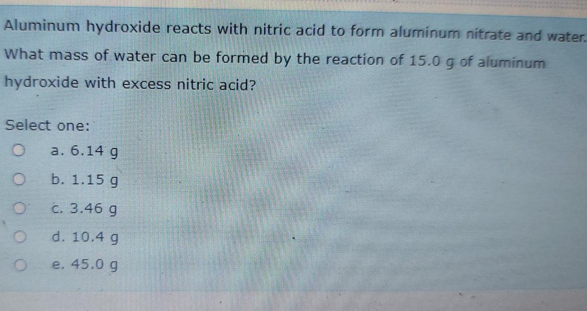 Solved Aluminum hydroxide reacts with nitric acid to form