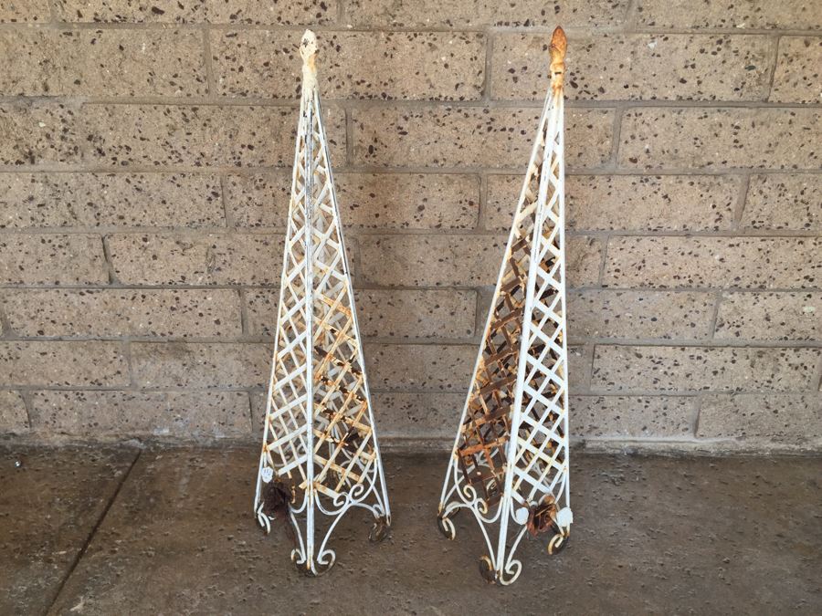 Pair Of White Rustic Metal Garden Obelisks