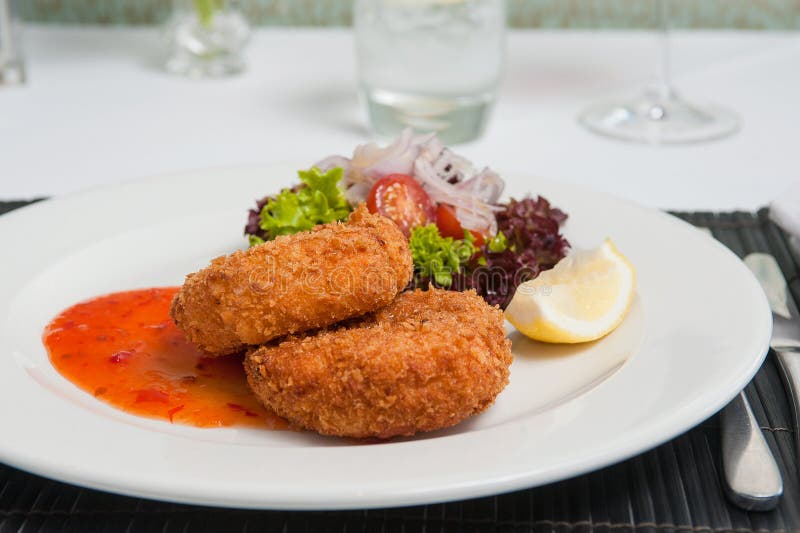 Fishcake with Sweet Chilli Sauce Stock Photo Image of sauce, snack