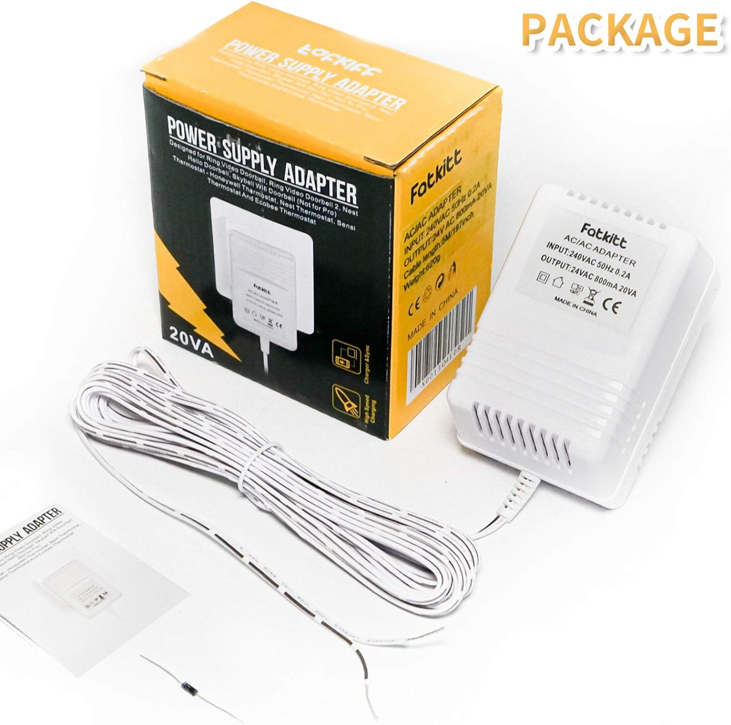 20VA Ring Doorbell Transformer, 24V 800MA Video Doorbell Power Supply