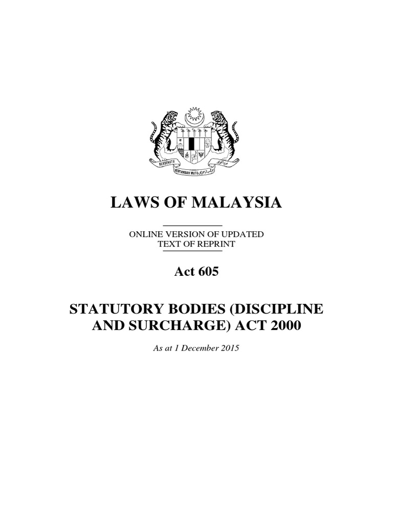 Laws Of Malaysia Statutory Bodies (Discipline And Surcharge) Act 2000