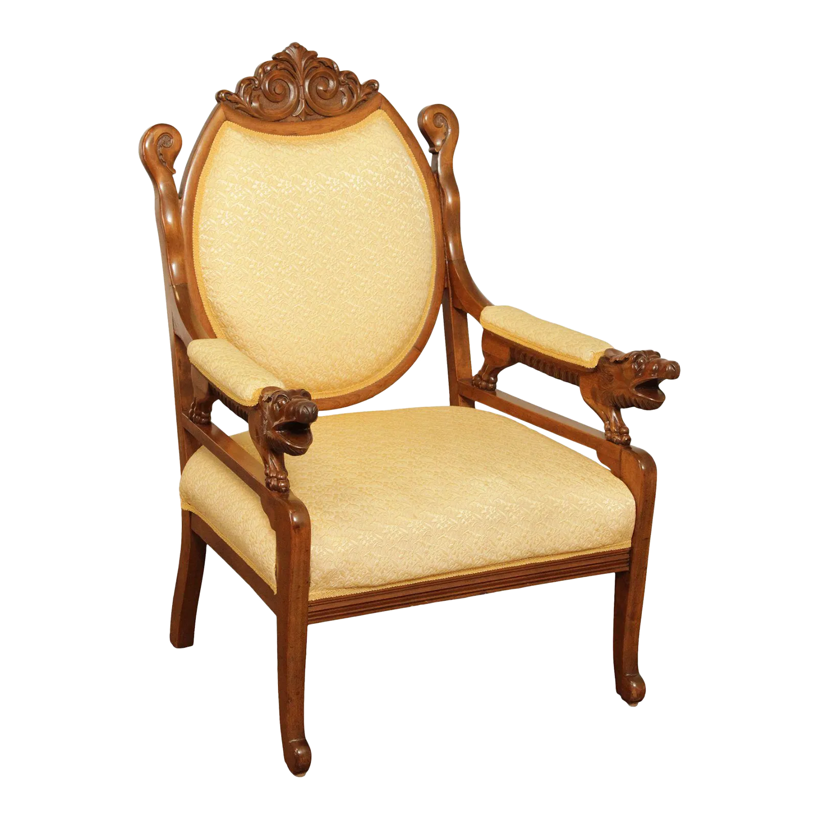 Antique French Empire Style Carved Maple and Beech Fauteuil Armchair
