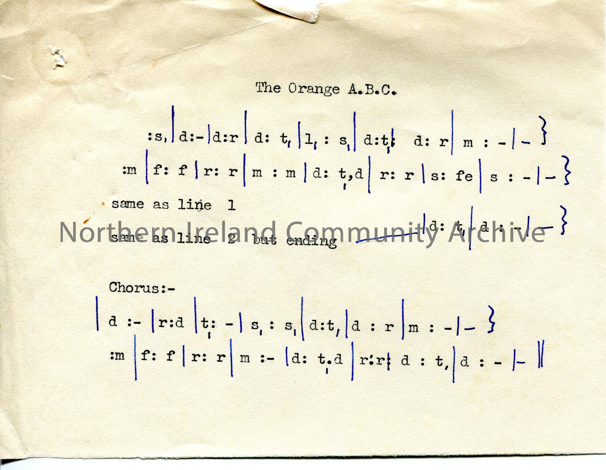 One of 2 pages with typed tonic solfa notation and words to ‘The
