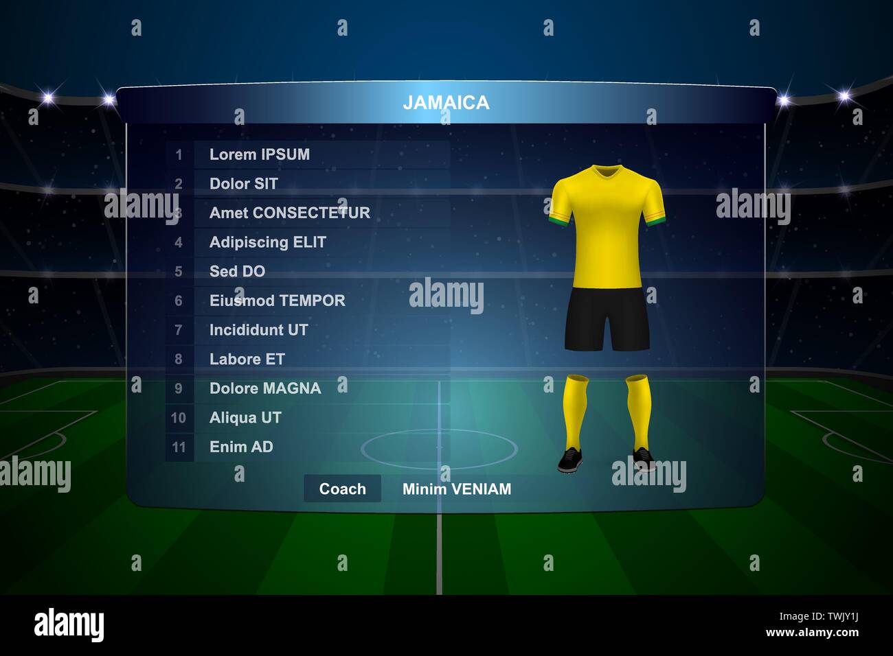 Football scoreboard broadcast graphic template with squad Jamaica Jamaica Soccer Squad Includes full details on appearances, minutes played, goals and assists. 22 rows explore the 2024 jamaica roster on espn. Full squad information for jamaica, including formation summary and lineups from recent games, player profiles and team news. Check out jamaica's latest scores, goals, shooting, passing, defense, possession stats and more for the 2024 {competition}. Founded 1910 address 20 st. Jamaica Soccer Squad.