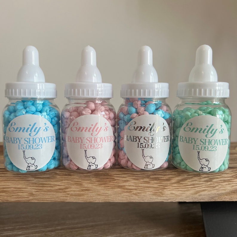 Personalised Baby Shower Favour Bottles Baby Shower Bottles Baby Shower What To Fill Baby Shower Bottles With Add some sprinkles or chocolate chips, if desired. I found seven exciting baby shower games with baby bottles that’ll keep the party guests entertained for hours! Fill larger baby bottles with cake mix. Grab some baby’s breath flowers and arrange some baby bottles on the table. When guests attend a baby shower, they do expect to receive a baby shower. What To Fill Baby Shower Bottles With.