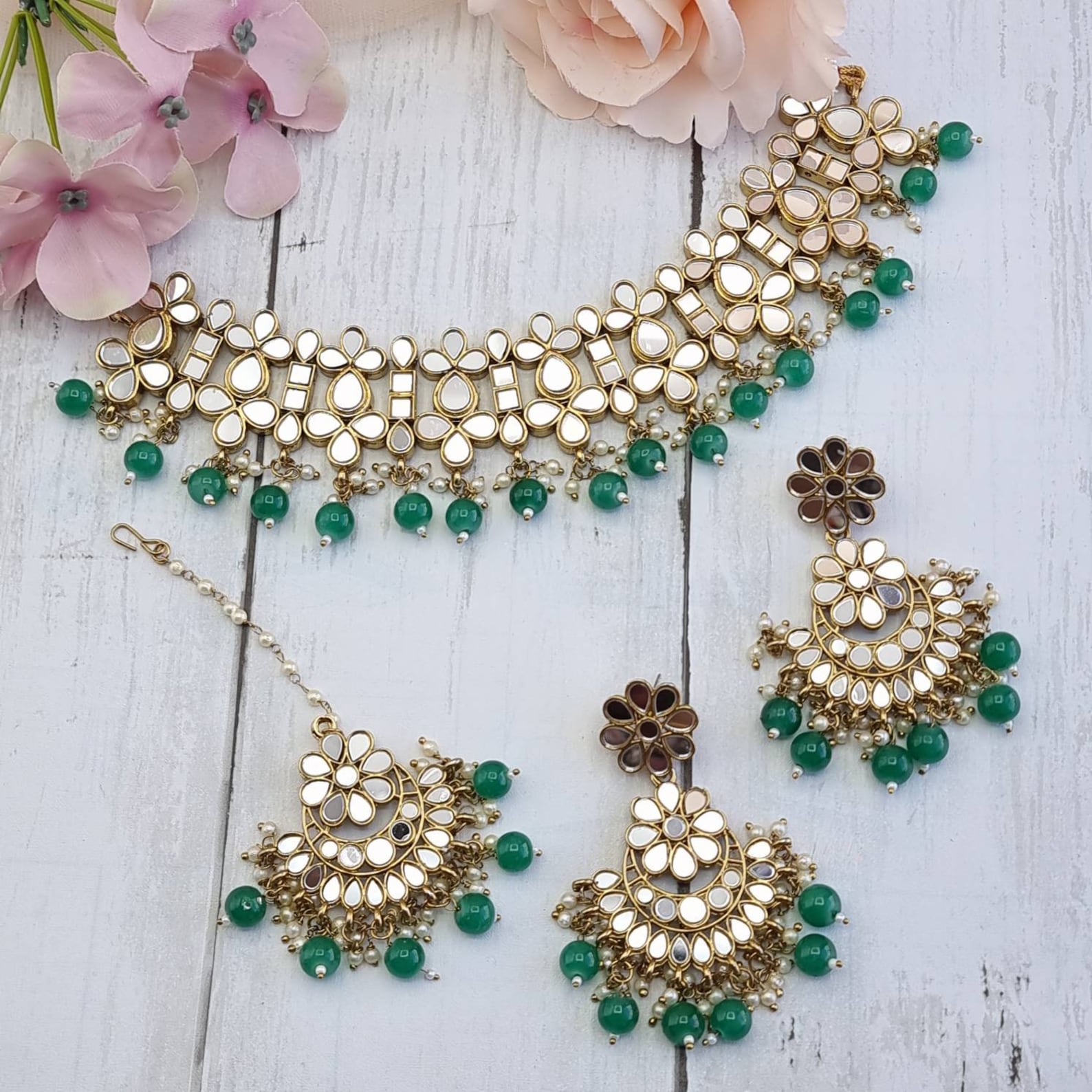 Azai by Nykaa Fashion Green Mirror Work Statement Jewellery Set Buy Mirror Work Jewellery Set Choker sets, long necklaces, elaborate jhumkas with tiny embedded mirror pieces can be worn by brides and guests. The intricate designs add sparkle to. Mirror necklace with jhumka tikka,mirror work jewellery , mirror jhumka ,green mirror set, pearl mirror set pastel pink mirror set multicolo. Price and other details may vary based on product size and colour. Price and other. Mirror Work Jewellery Set.