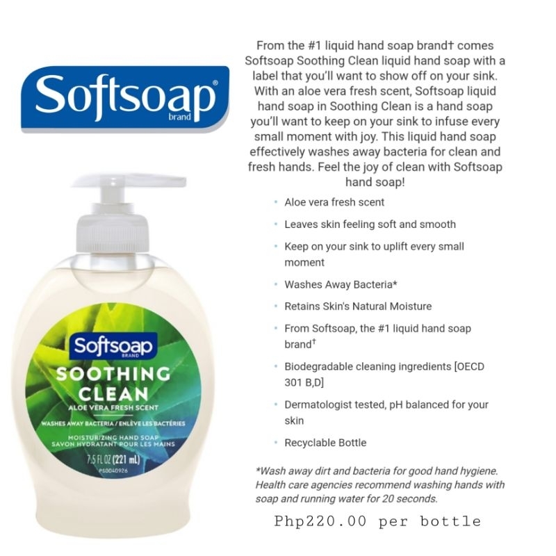 Softsoap Hand soap Soothing Clean Aloe Vera 221ml Shopee Philippines