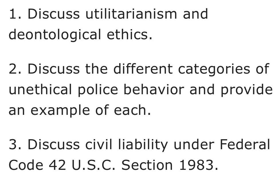 1. Discuss utilitarianism and deontological ethics.