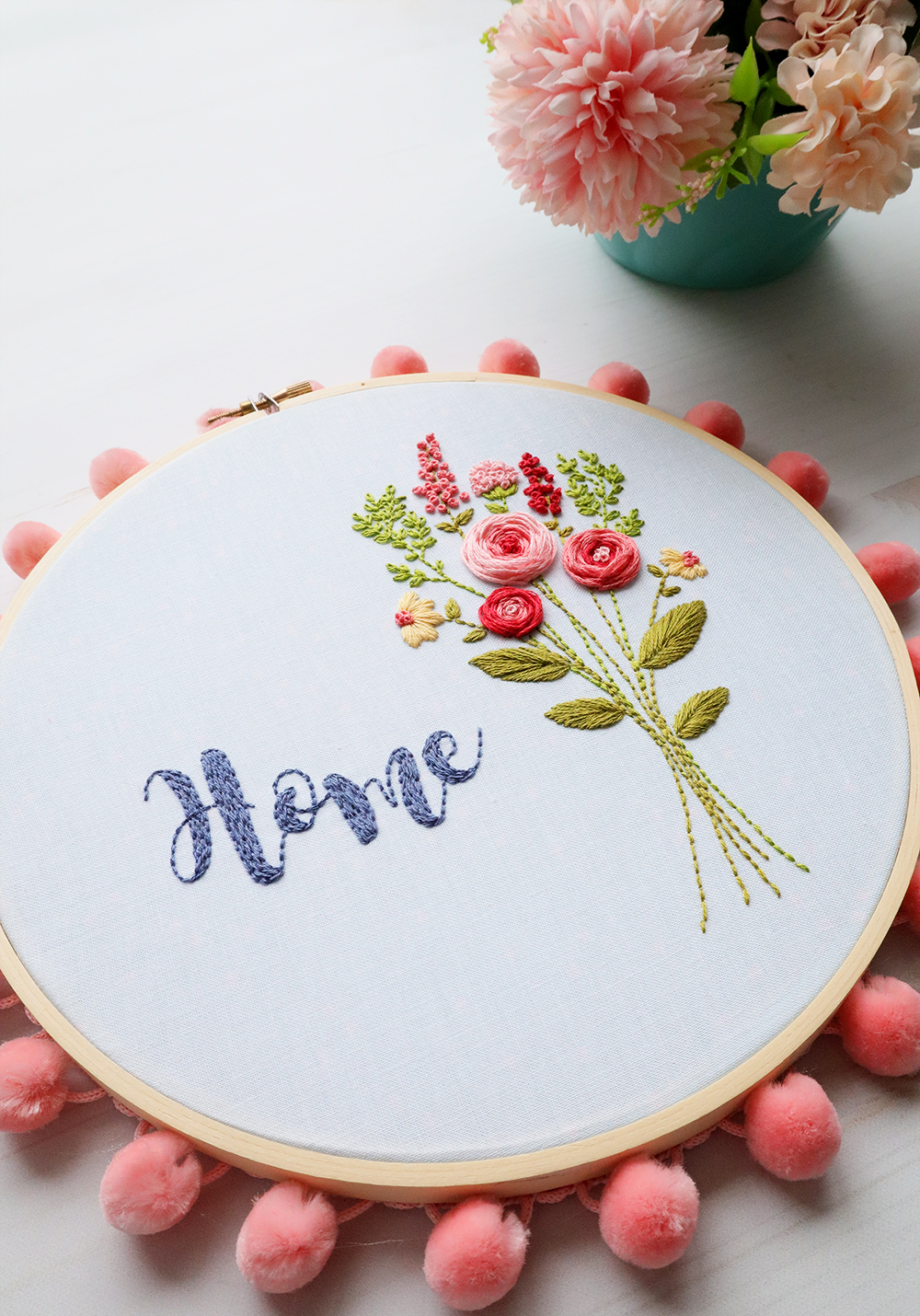 Modern Floral Sunflowers Daisy Hand Embroidery with DMC Threads by