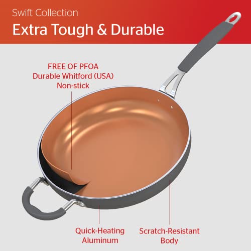 SUNHOUSE 11 inch Ceramic Nonstick Frying Pan with Lid Soft Grip