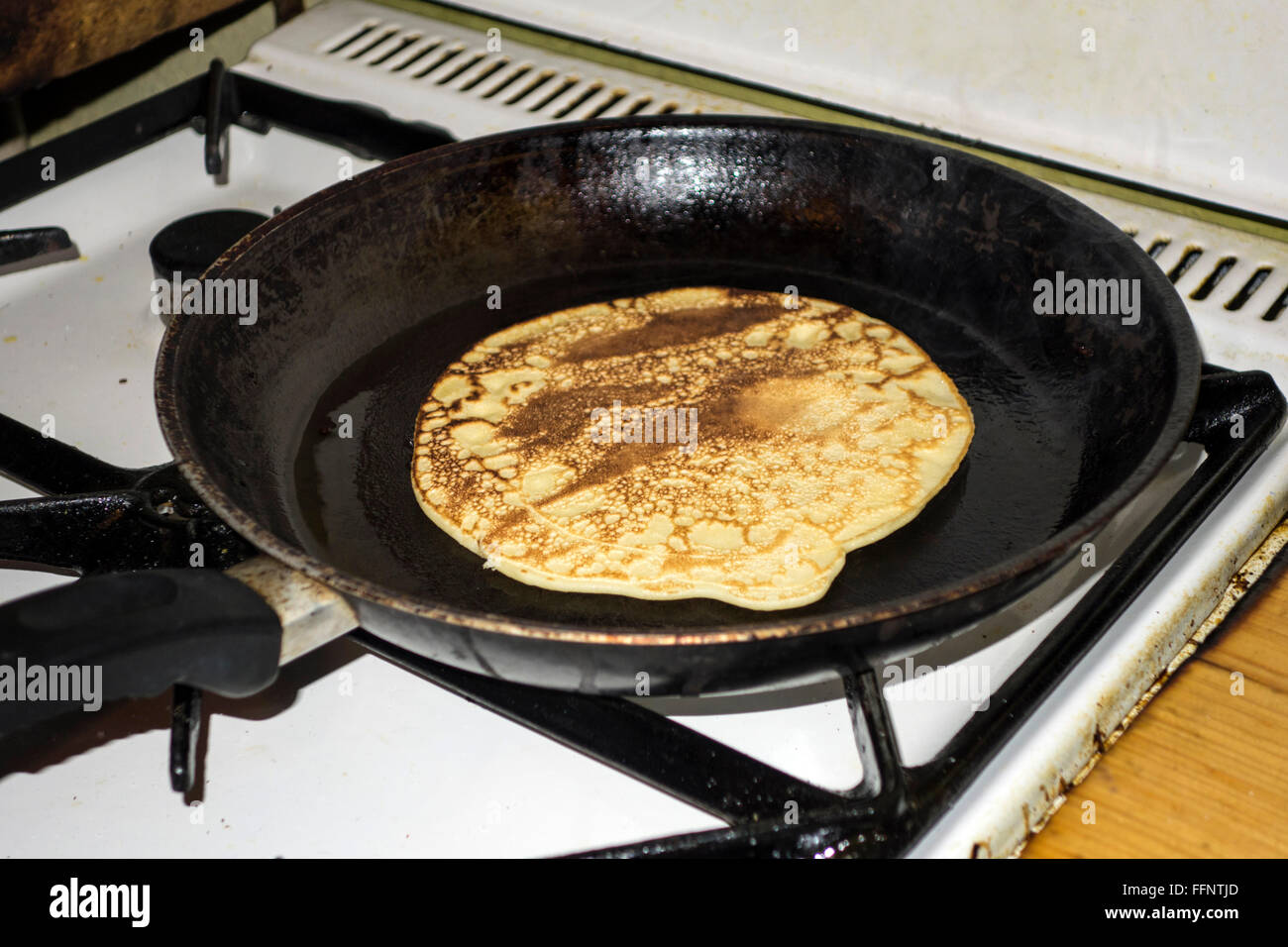 Making pancakes on a gas stove Stock Photo Alamy