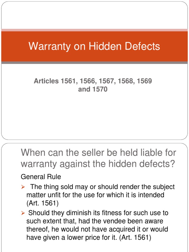 Warranty On Hidden Defects PDF Implied Warranty Business Law Warranty Defects Whenever there’s a warranty, the law says it. A warranty is a vital part of purchasing a product, offering consumers peace of mind that the item they’ve bought will function. Under article 667 (1), statutory defect liability under korean law not only applies to completed works but also to parts of the works that were finished before the completion of. Warranty Defects.
