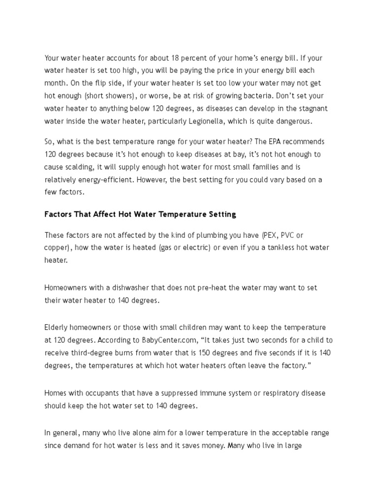Factors That Affect Hot Water Temperature Setting PDF Water Heating