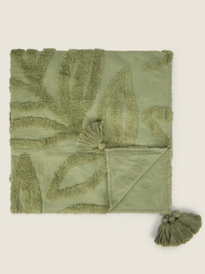 Green Leaf Tufted Tassel Throw Home at ASDA