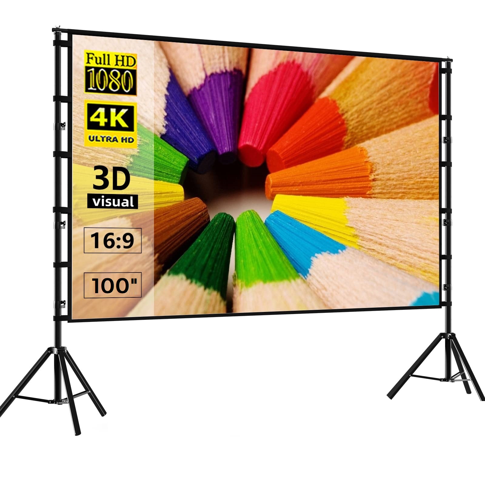 Order Wownect Projector Screen with Stand, 100 Inch Portable Indoor
