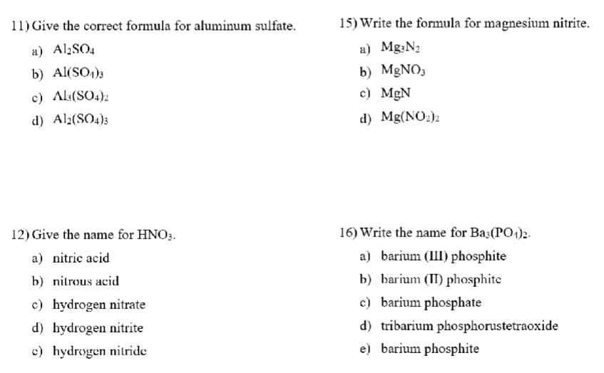 Solved 11) Give the correct formula for aluminum sulfate. a)