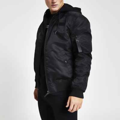 Black hooded MA1 bomber jacket River Island