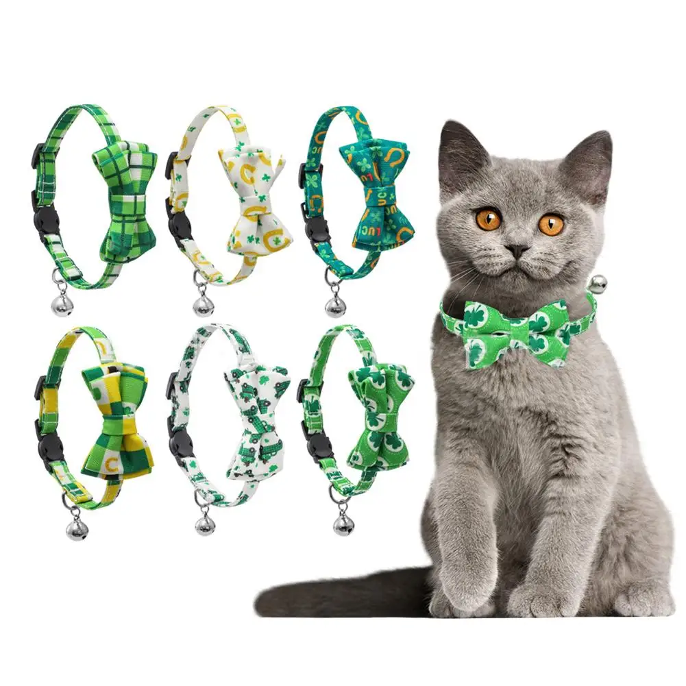 St.patrick Day Cat Collar With Cute Bow Tie Bell Adjustable Safety