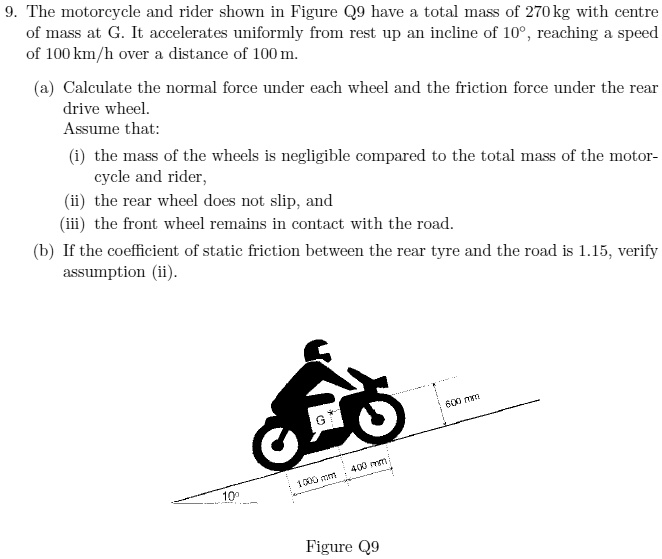 SOLVED 9. The motorcycle and rider shown in Figure Q9 have a total