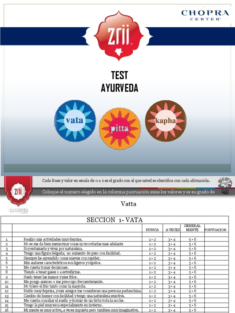 Test de Ayurveda PDF Dormir Bienestar Ayurveda Test Uk Ayurveda recognizes three body types, called. With the free ayurveda test from euroved, you’ll find out which foods are good for you and which yoga exercises and meditations best suit you. Do you know what your dosha type is ? Dosha quiz | discover my ayurvedic body type. Then discover what to do with it with our introduction to ayurveda. Ayurveda Test Uk.
