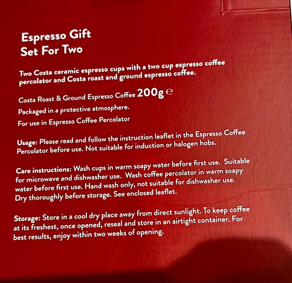 Costa Coffee Espresso Gift Set Brand New eBay
