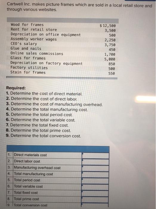 Solved Cartwell Inc. makes picture frames which are sold in