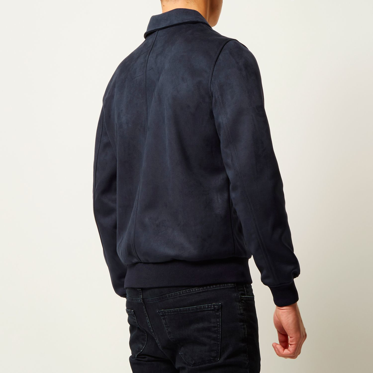 River Island Navy Faux Suede Harrington Jacket in Blue for Men Lyst